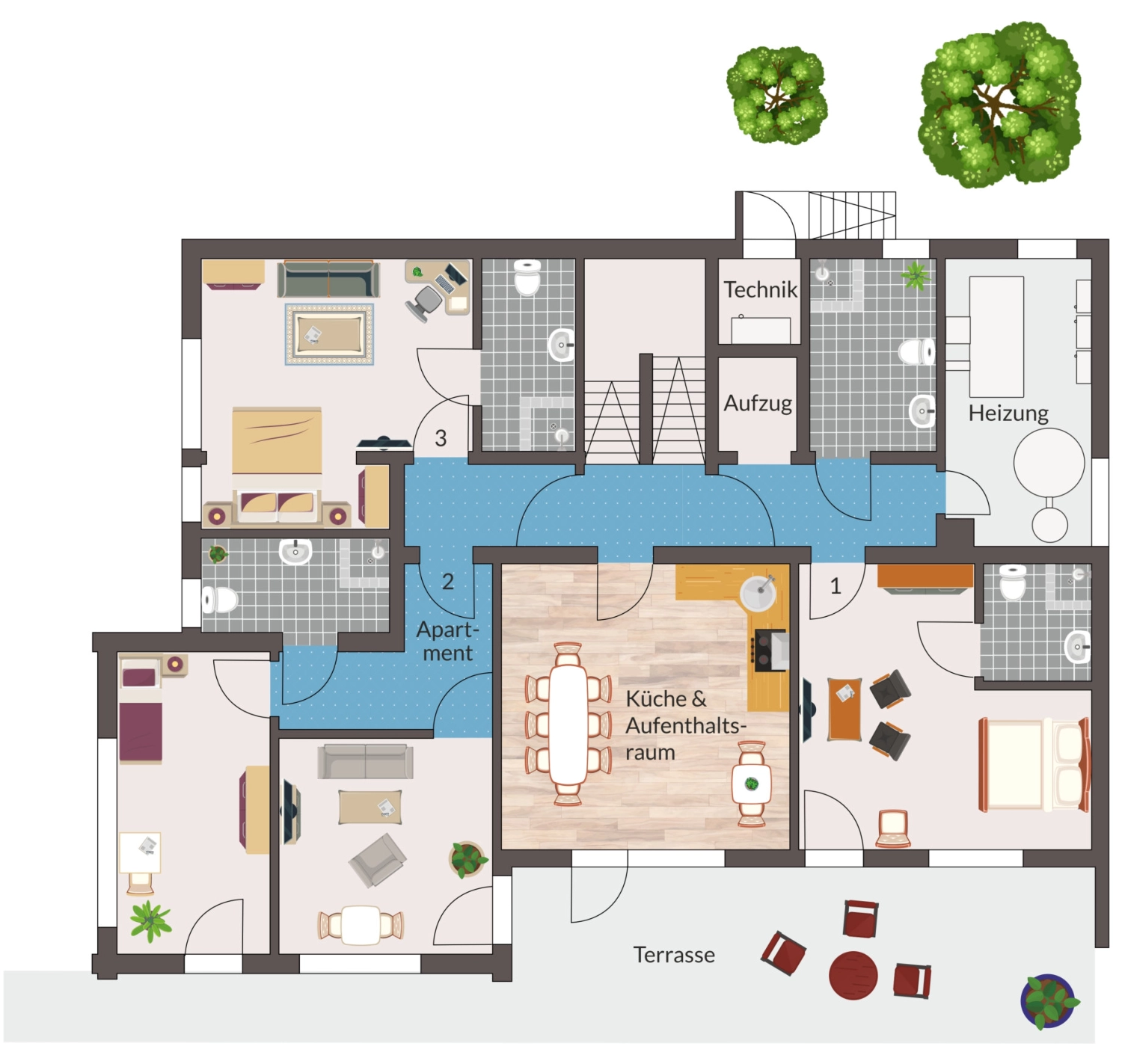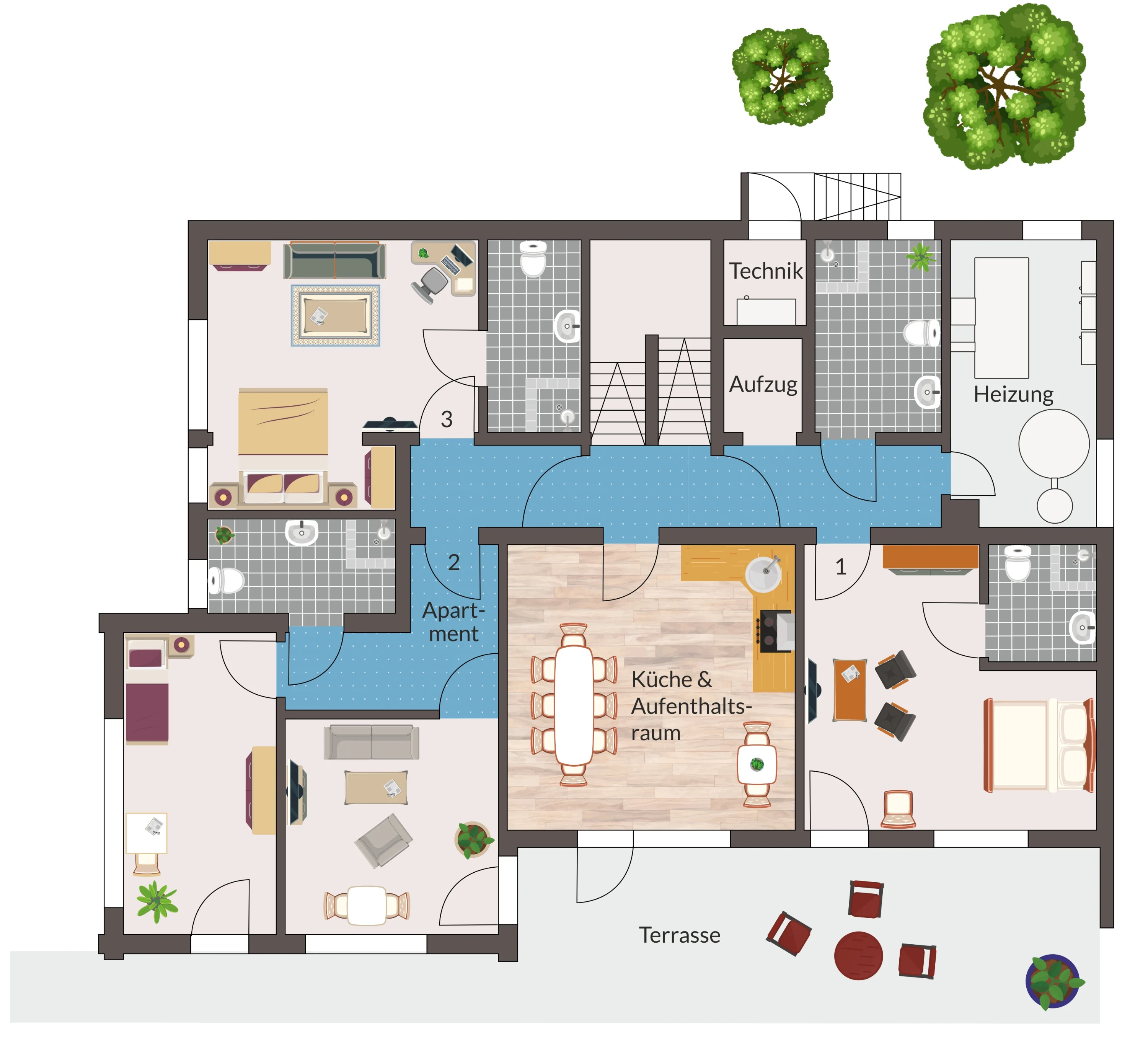 schöne Terrasse finden hier Platz.